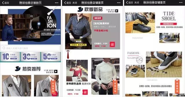 淘宝店可以这么做(虽然我们也不推荐不合品类的胡来设计),因为在电商购物平台这个环境中,我们大概率并不是由首页进入店铺,而是有目的的搜索宝贝,并且从宝贝页面中的店铺链接进入首页,我们很清楚我们在找什么,而首屏店铺类别不够明确这件事就显得不那么重要了,并且在用户知道他们要买什么的情况下,三张优惠券也恰到好处的切中了用户的痛点。