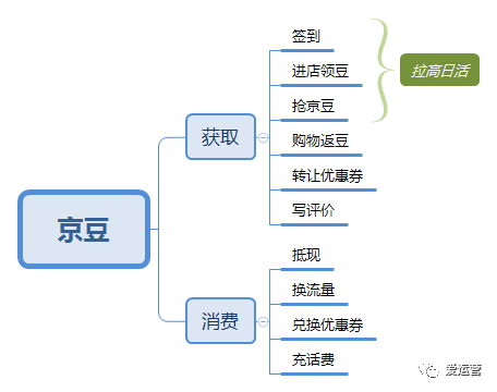 京豆的结构由获取和消费两部分组成,形成一个闭环。