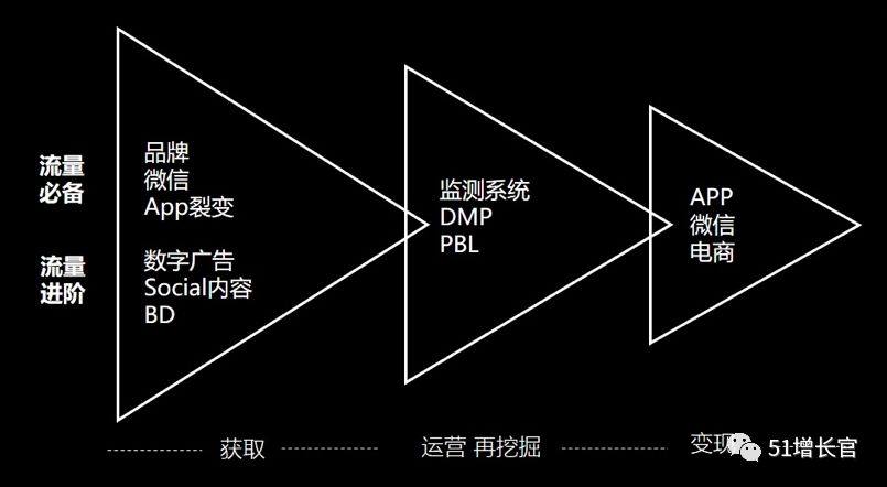 2、留存第一,可从转变顾客思维为用户思维、以高频带高频、利用DMP和PBL运营用户三方面着手实施,实现存量变增量。